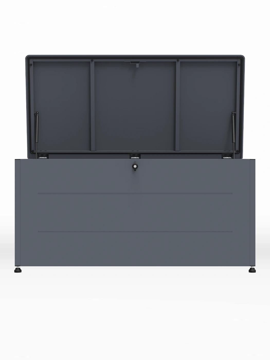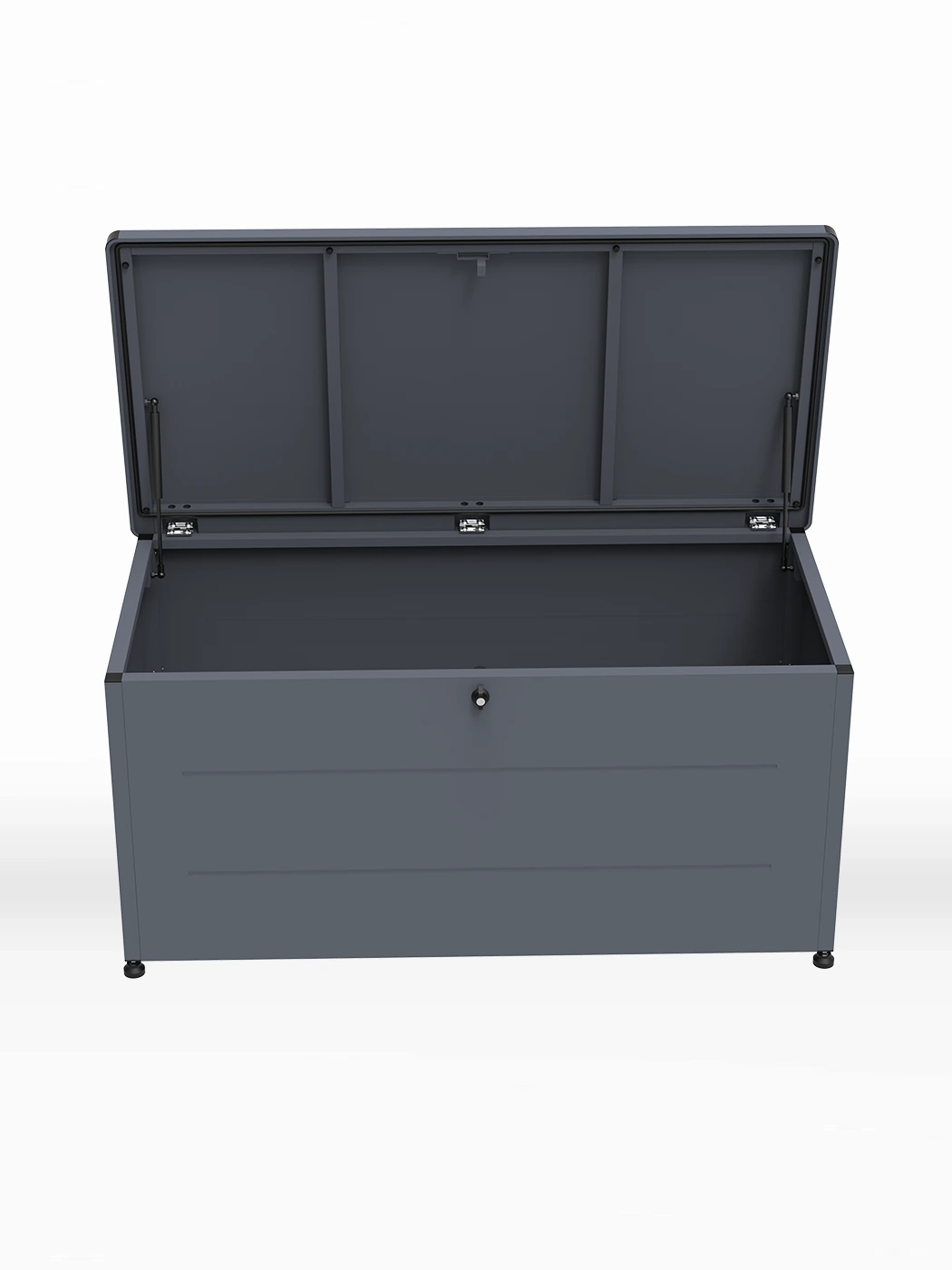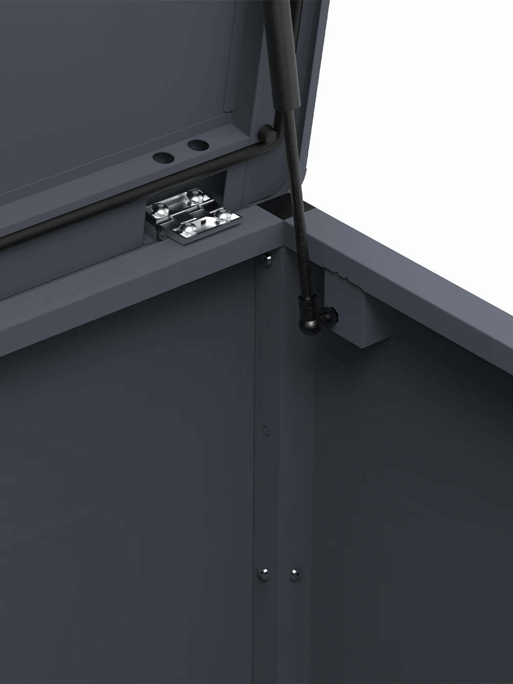 - Gas strut-assisted lid allows for smooth and safe opening and prevents slamming shit.