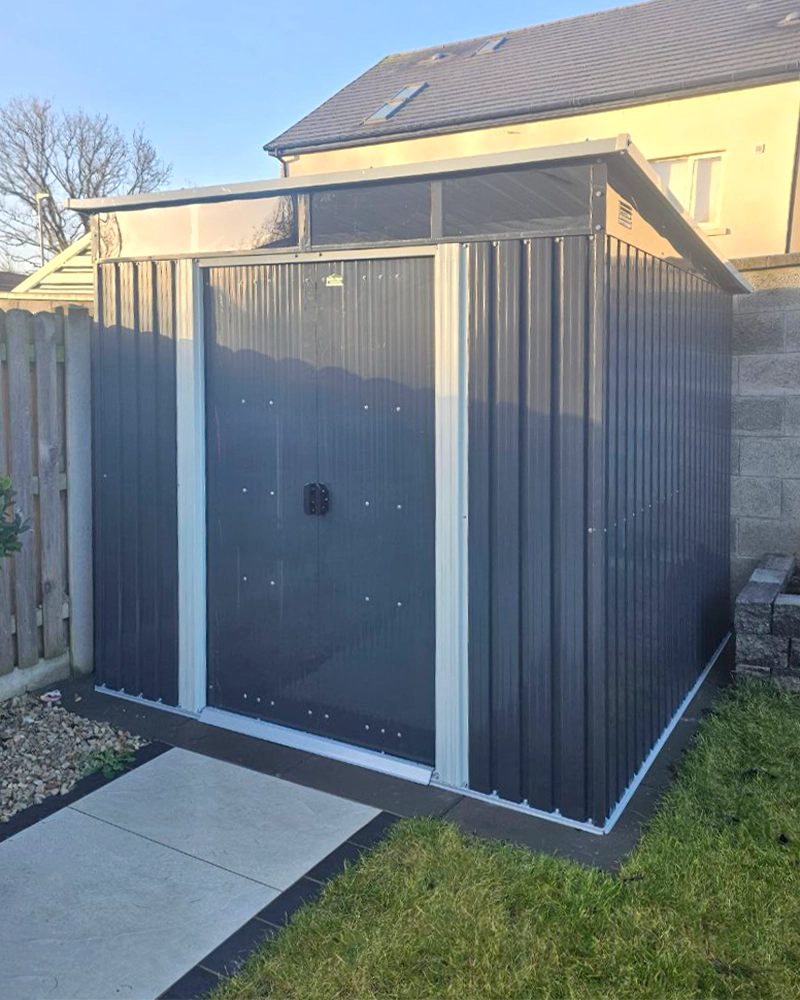 Add to this that it comes in a lovely shade of ‘Goose Grey’ and you can see why the Steel Pent Shed stands out from the rest. It’s bright and the sliding doors help maximise the room available. The sliding doors are great for safety and will keep children’s fingers from accidental slams! The Shed itself comes flat packed, so it’s self-assembly, but we can offer an assembly service in select counties. Use the drop-downs to see where we assemble and to get a price!