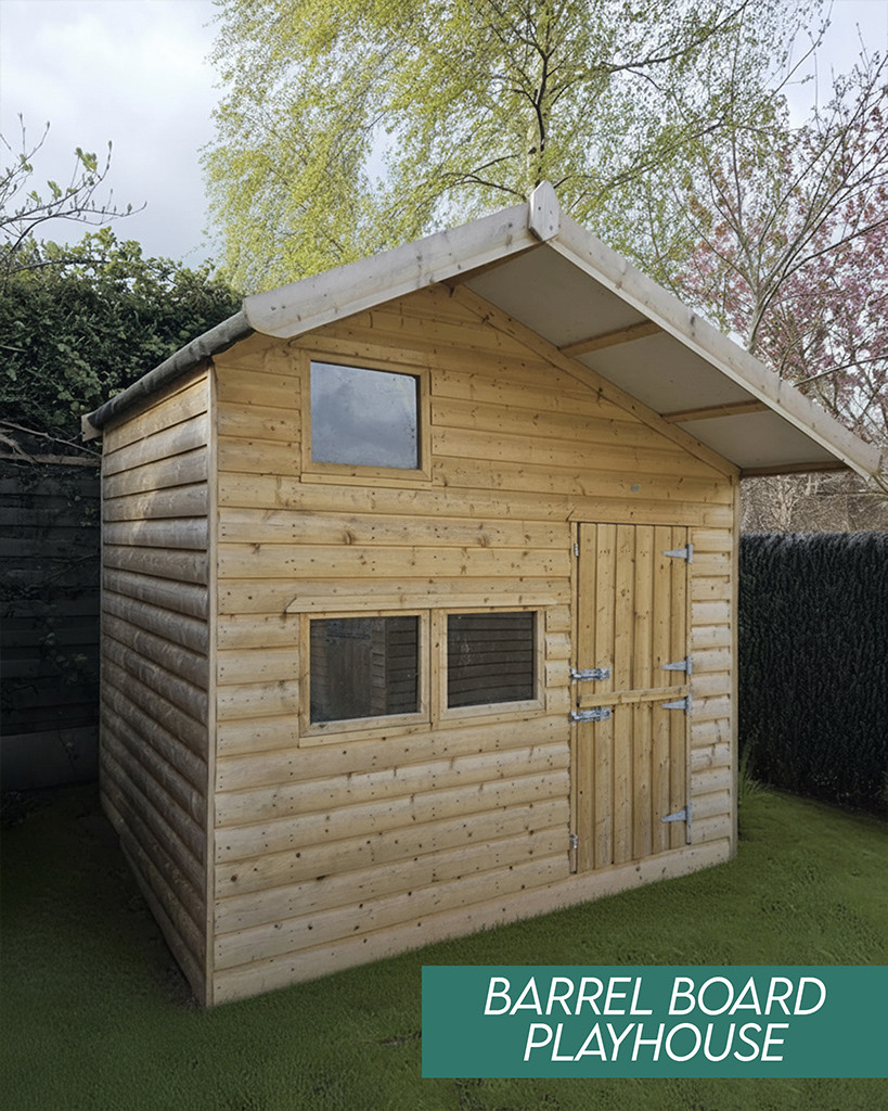 Barrel Board are smoothed boards, with a bulged, log-style appearance. They’re the obvious choice for a children’s playhouse as they’re tough, sturdy and wipe clean easily. It comes with a moisture barrier lining too!