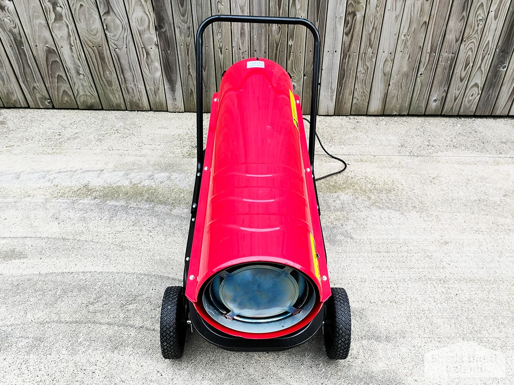 This industrial space heater is as powerful as we have available in the Sheds Direct Ireland heater range. It designed for large, well-ventilated areas that required fast heating, e.g. workshops, warehouses etc. This Space Heater heats up fast, blows out heat and will get you warm in no time. It runs on almost any suitable heating fuel (more details below) and it’s fully portable.