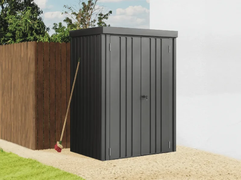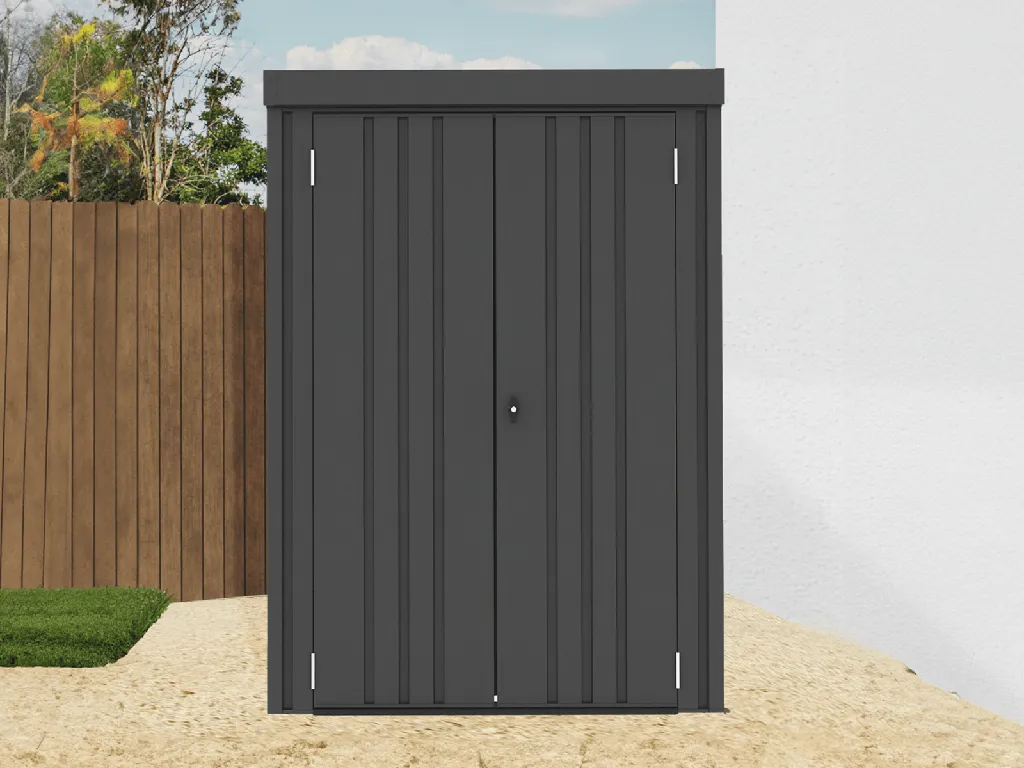 The Mabelle is a unique innovative designed metal storage unit / equipment locker. Its slick size makes it ideal for storing your BBQ equipment, garden items and more without taking up too much space. It has a beautifully crafted pent styled roof, giving it a very modern look and appeal, that blends well in any location and won’t restrict your living space.