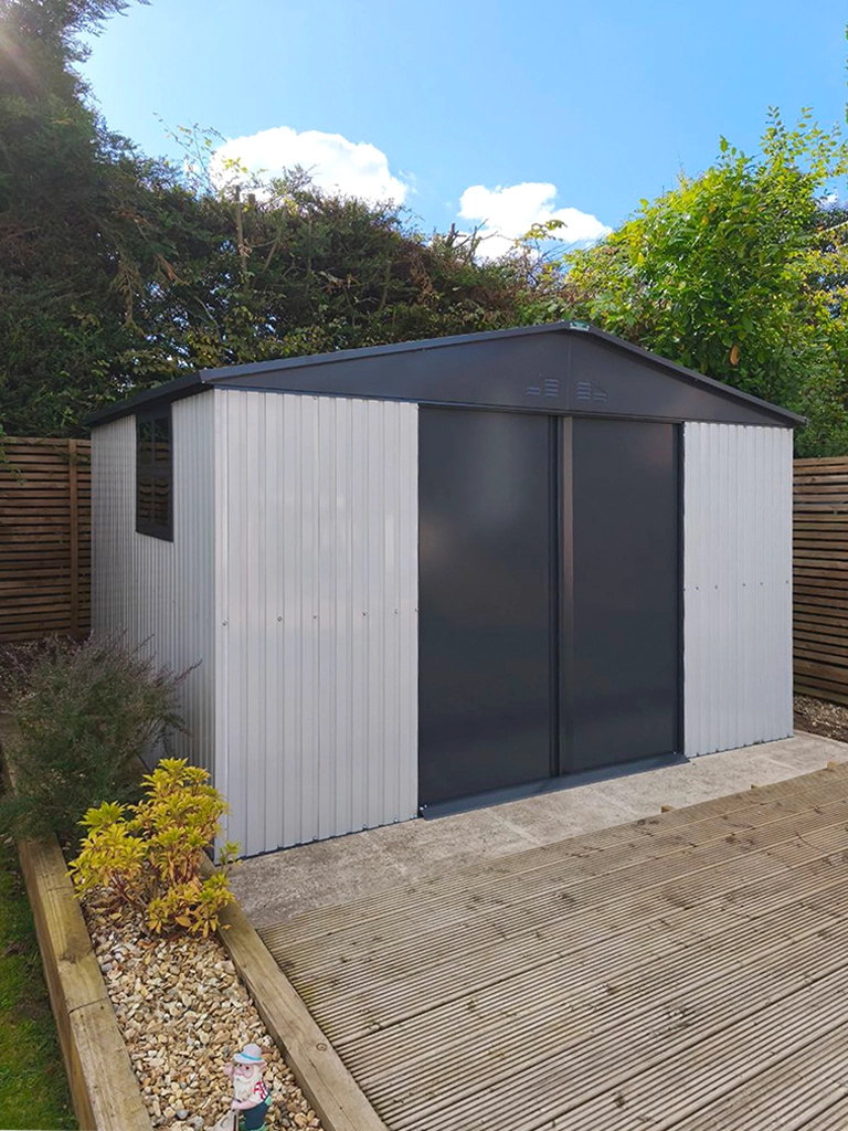 - As with all steel sheds, a solid, level base is needed to assemble this shed onto. Concrete, pacing slabs, hardcore stone, our ShedBase etc.